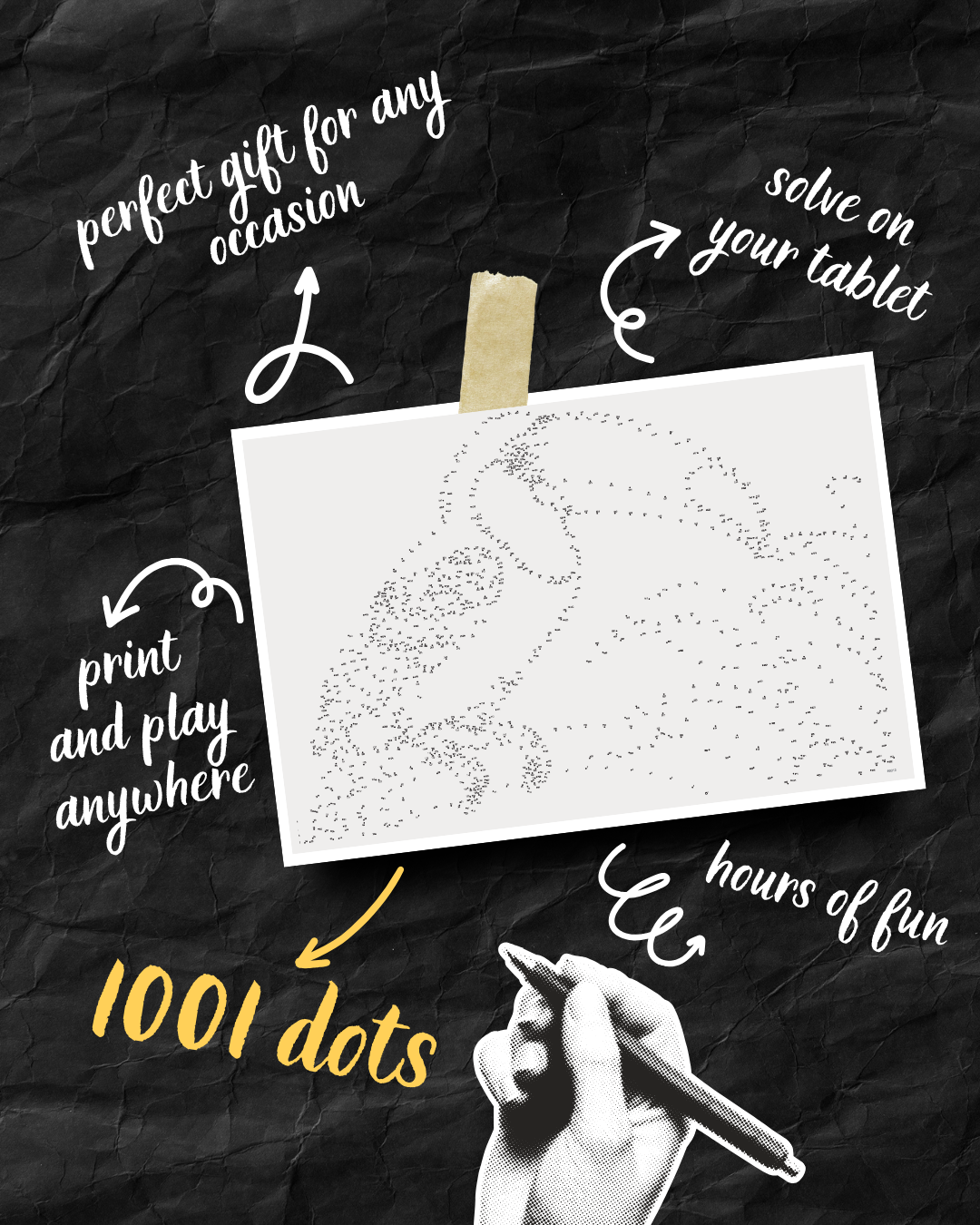 Chcesz podarować komuś (albo sobie!) wyjątkowy prezent? Zamów indywidualny projekt dot-to-dot ze zdjęciem ulubionego zwierzaka. Wystarczy, że wyślesz fotografię, a ja przygotuję dla Ciebie unikalny wzór. Trochę cierpliwości – i gotowe, możesz cieszyć się najbardziej osobistym dot-to-dot!